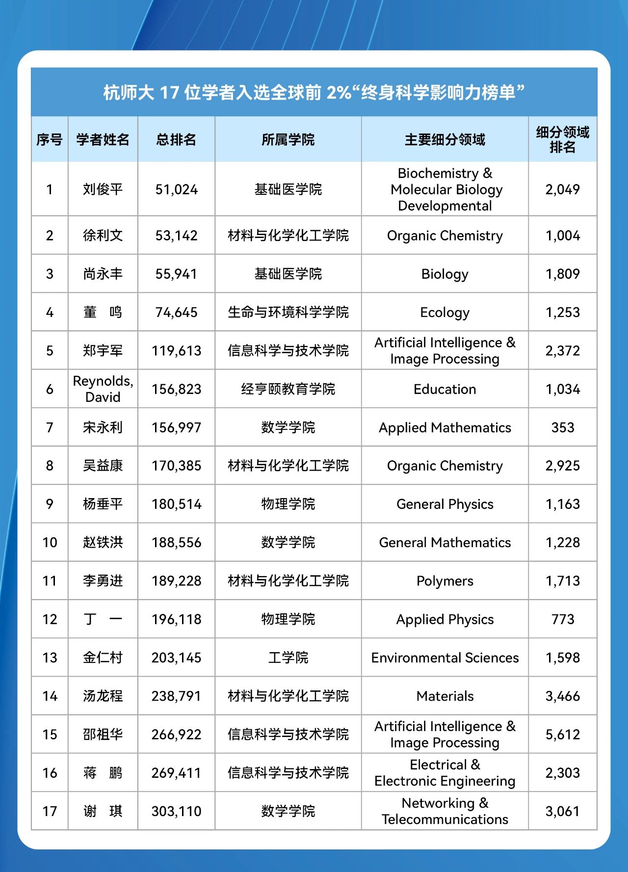 杭师大17位学者入选