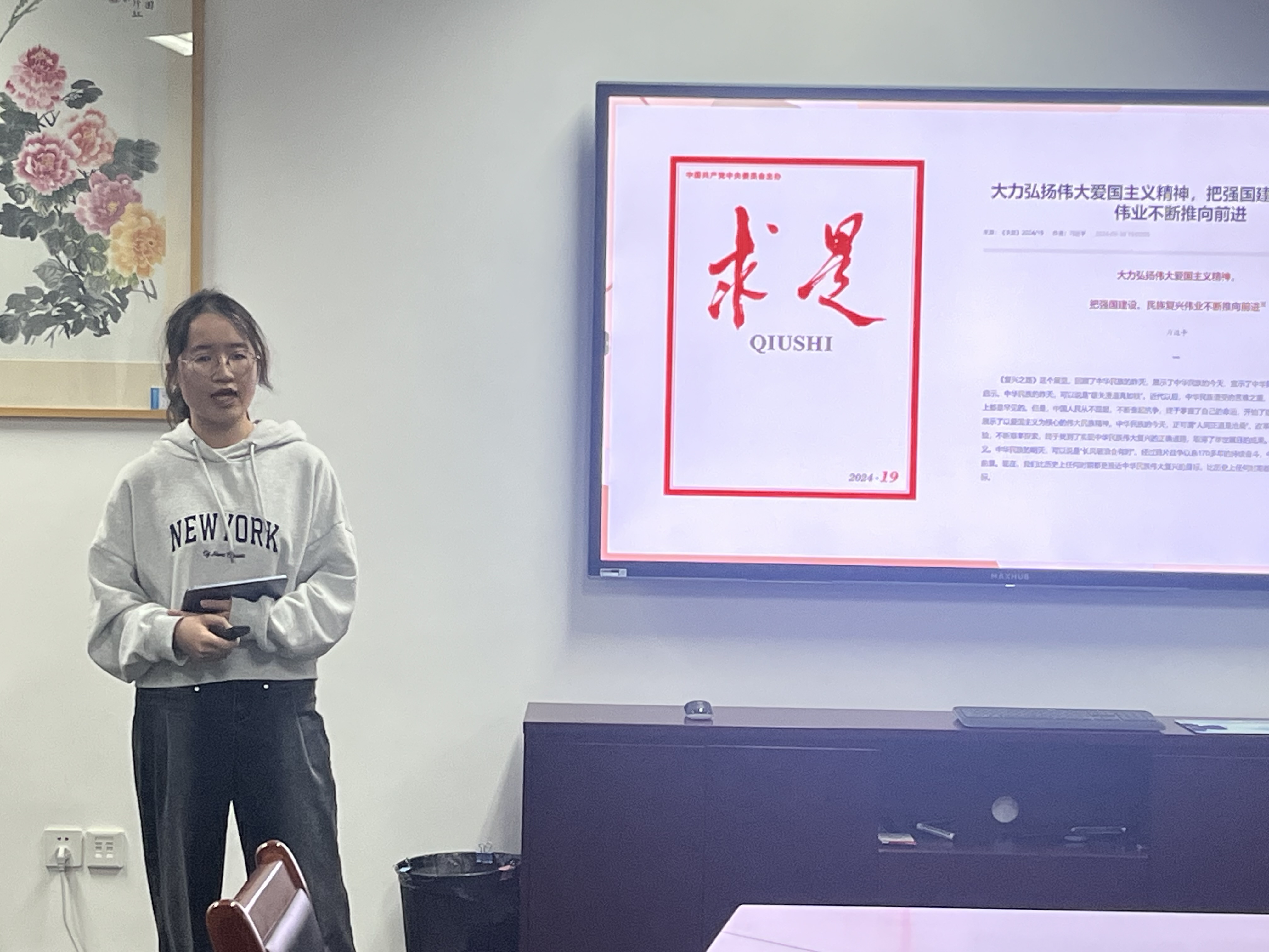 2024年10月24日,色花堂 学生第一党支部于勤19-226会议室开展了十月主题党日活动,由薛景缤、舒一惠两位党员分享他们关于爱国主义精神的心得体会。