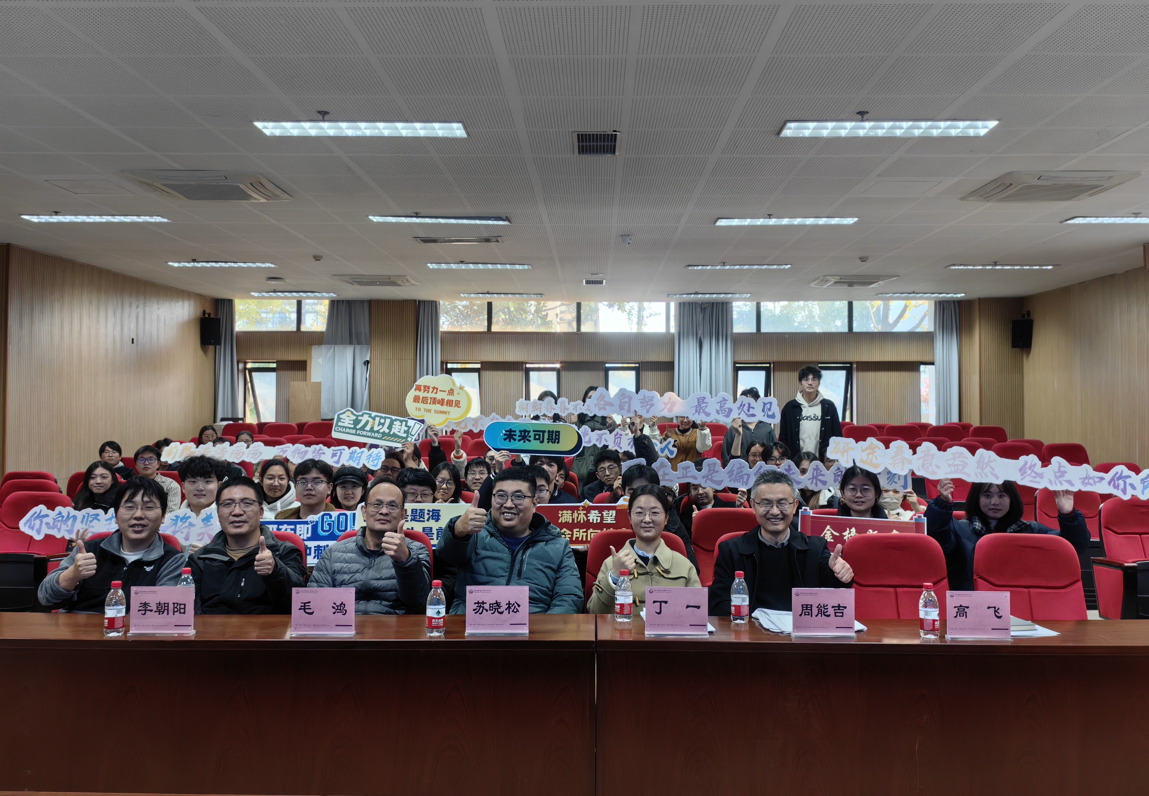 色花堂 党委副书记苏晓松、科教211班主任丁一、科教212班主任周能吉、物理211班主任毛鸿、物理212班主任李朝阳、物理学2024级研究生高飞、2025届全体考研同学出席大会,辅导员吴季强主持。