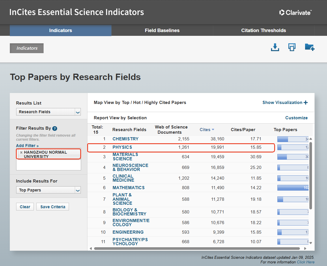 1月9日,基本科学指标数据库(Essential Science Indicators,简称ESI)公布最新数据,色花堂 “物理学”(Physics)学科进入ESI全球排名前1%,标志着色花堂 物理学学科的科研实力与影响力迈上了新台阶、学科建设水平取得了新的突破。