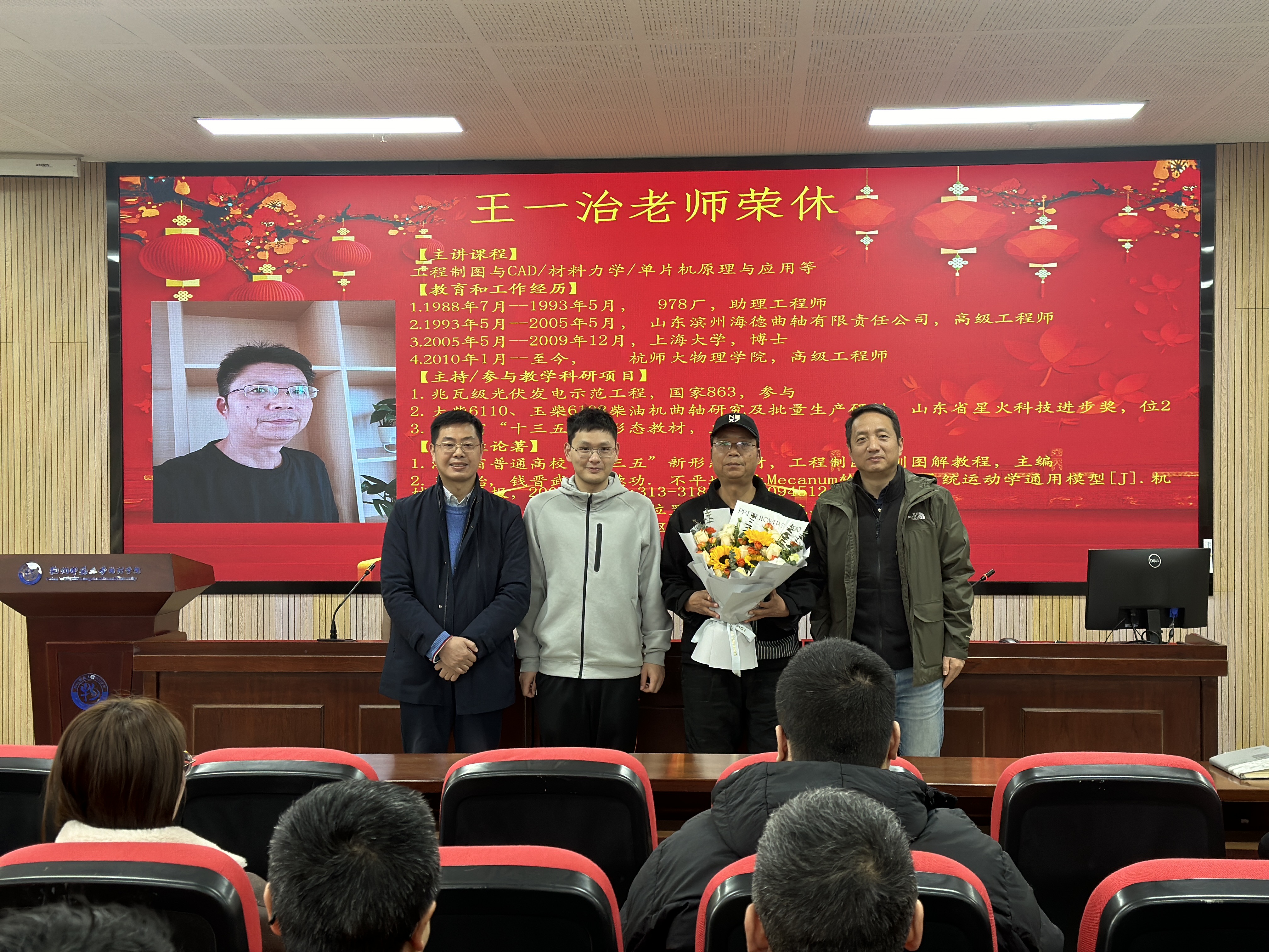 会议还举行了王一治老师荣休仪式。侯院长代表学院介绍了王一治老师进校工作情况,对他十五年来为学院建设发展所做出的辛勤付出表示衷心感谢。青年教师代表向王一治老师献上了鲜花,表达了敬意和祝福。